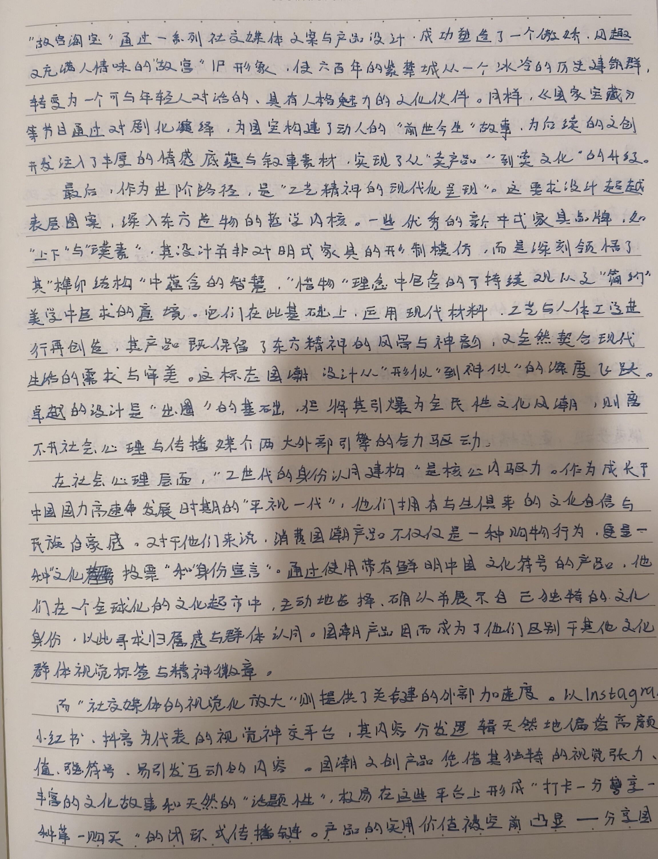 对于问题:论述题:从设计文化的角度分析国潮风文创产品出圈的现象。(中外) 26-武汉理工-姜仔瑶的回答