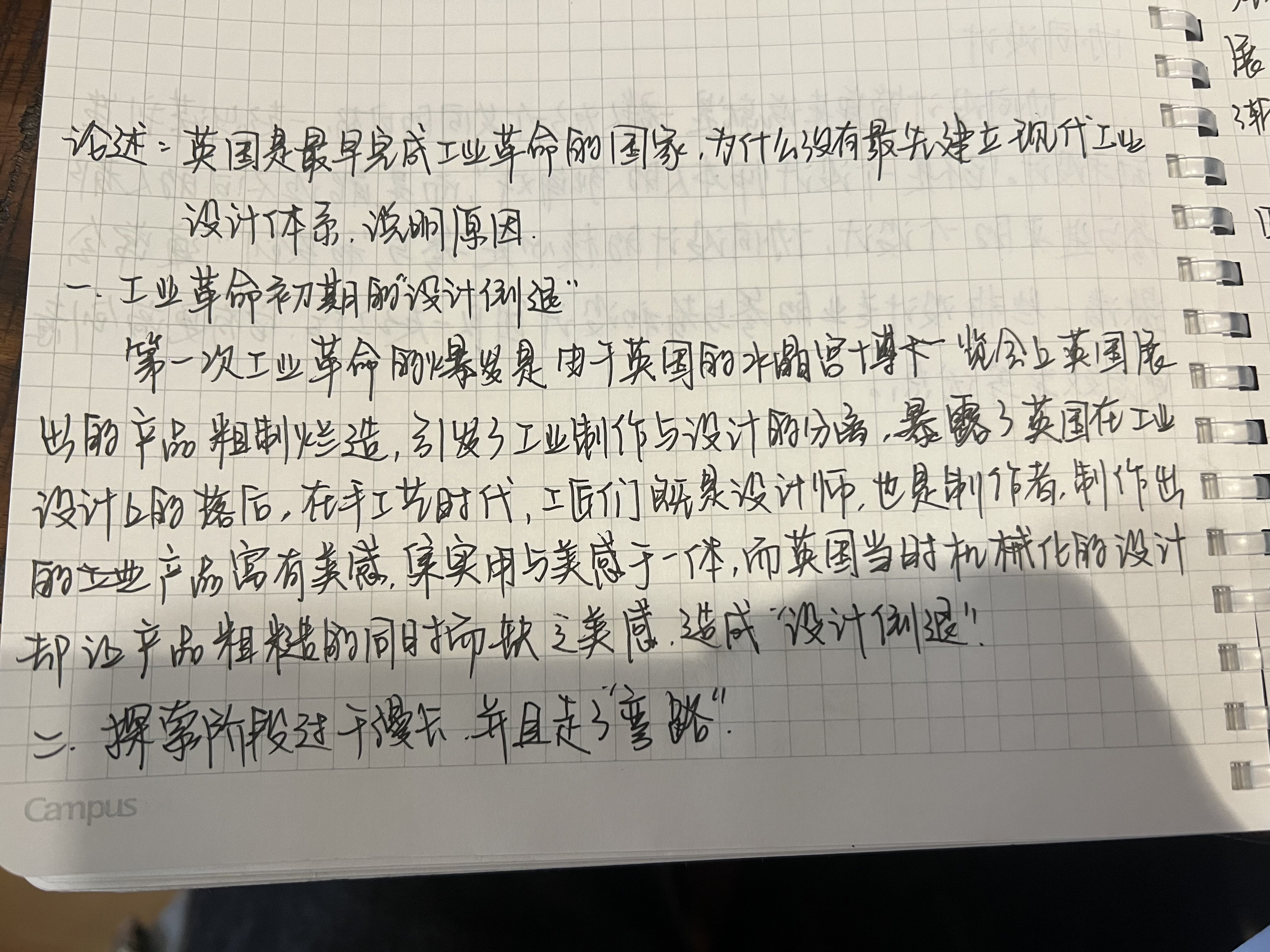 论述题:英国是最早完成工业革命的国家,为什么没有最先建立现代工业设计体系,说明原因。(20分) — 浙农林-练芷宏的回答