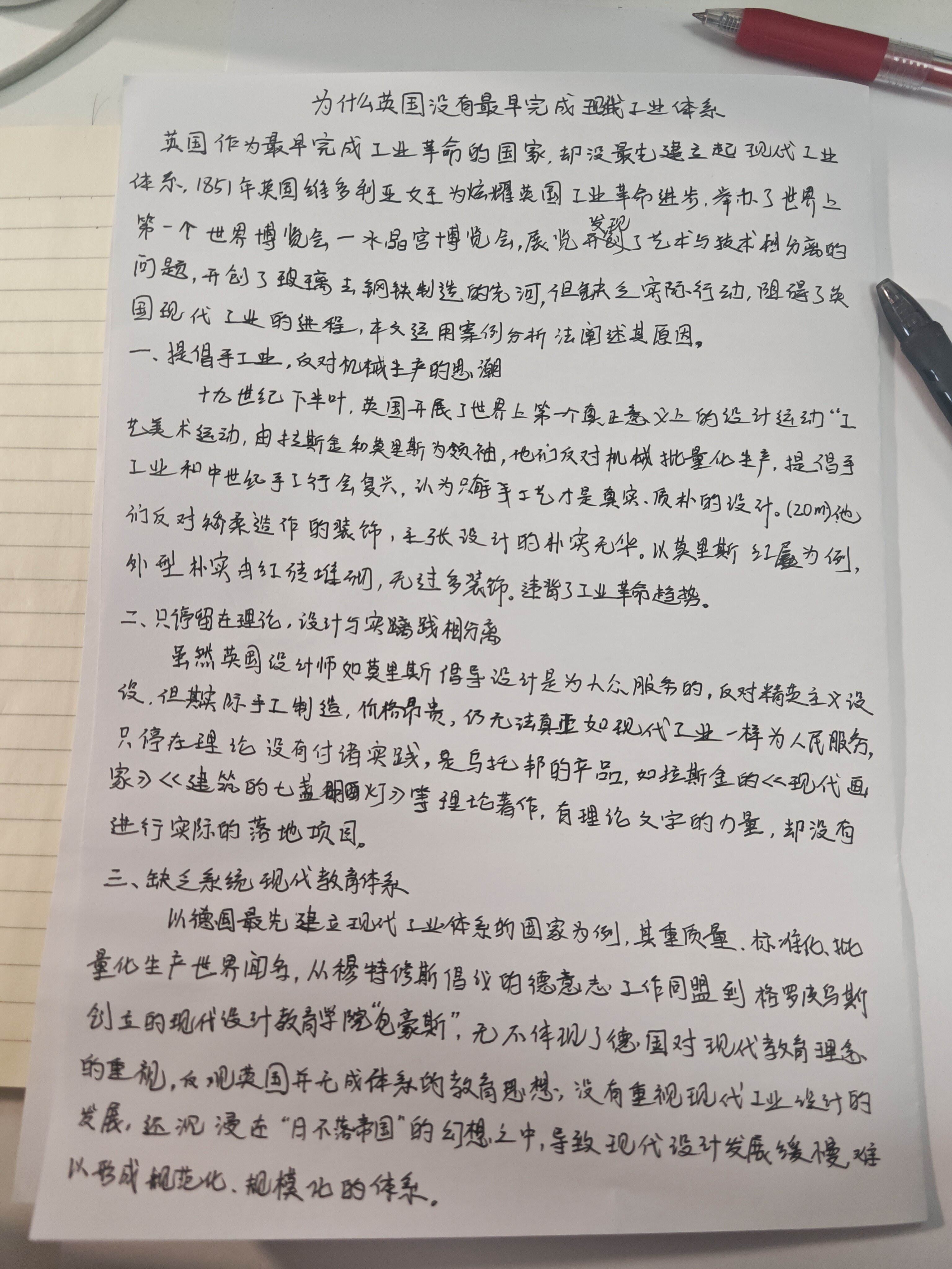 论述题:英国是最早完成工业革命的国家,为什么没有最先建立现代工业设计体系,说明原因。(20分) — 华科 许家辉的回答