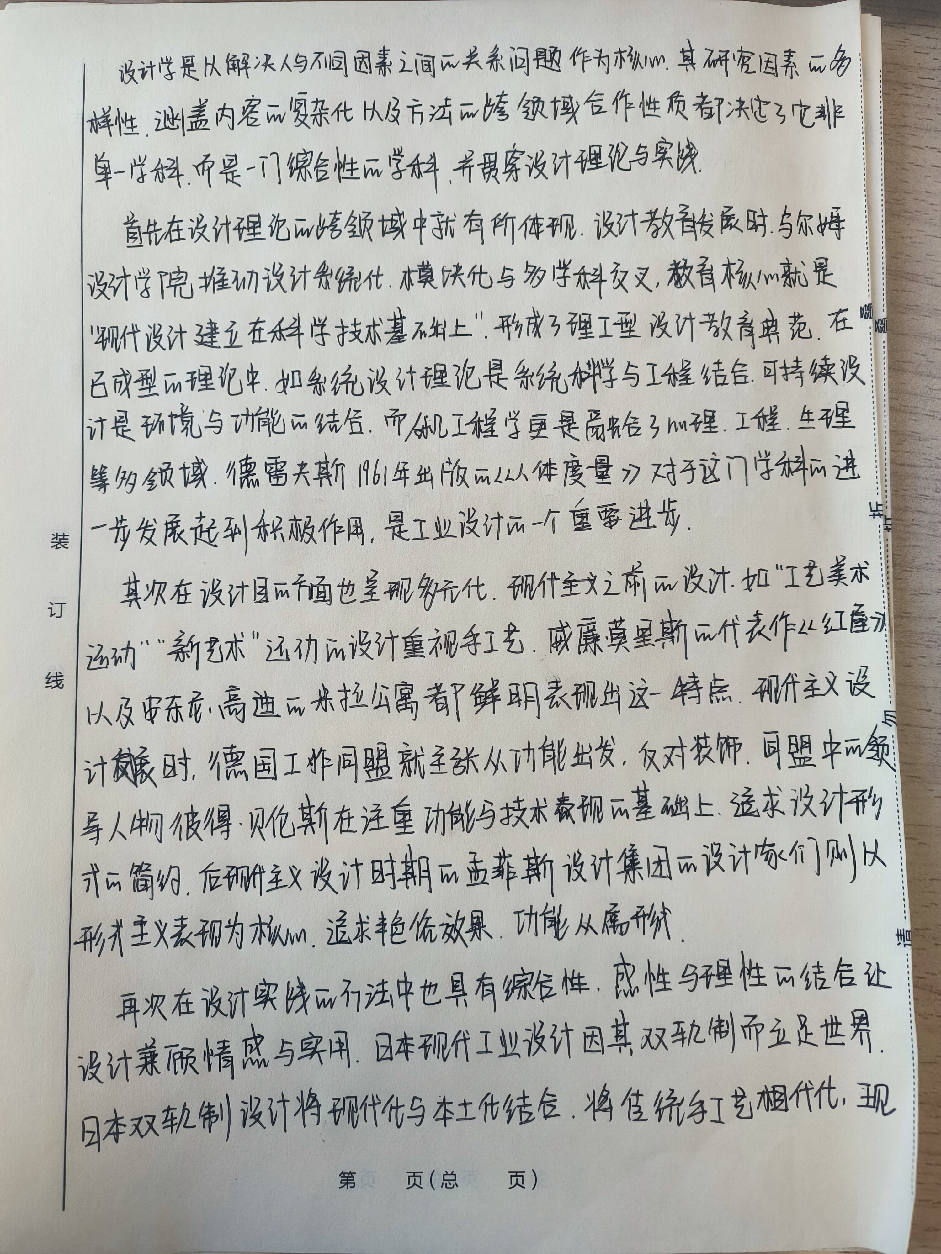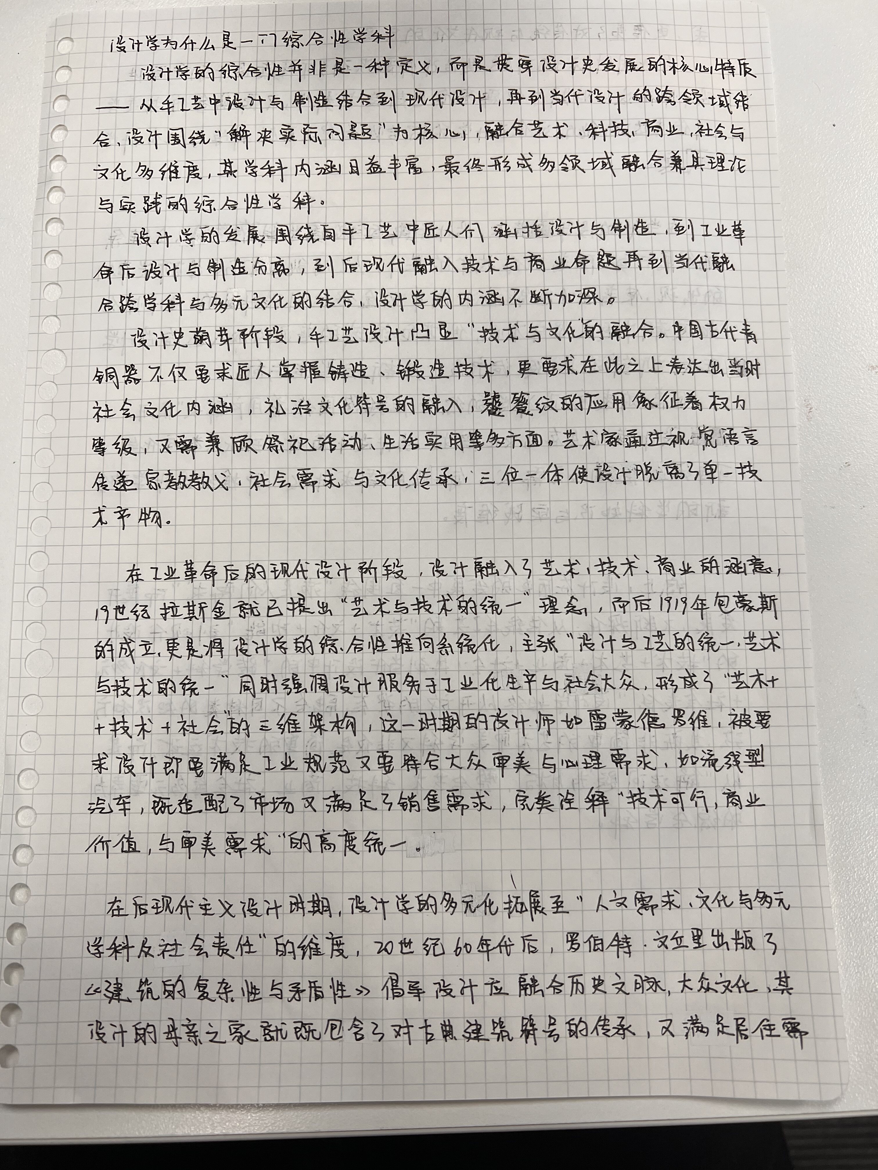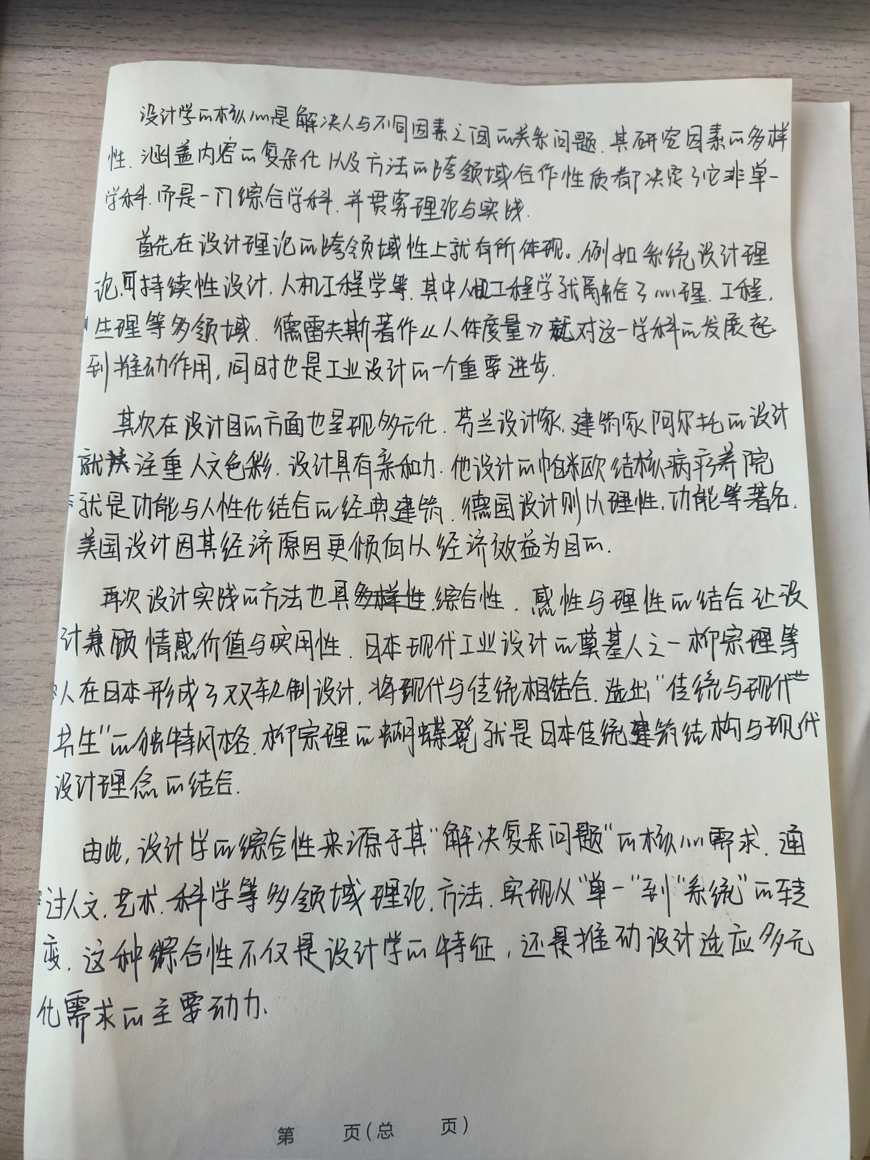 首段:设计学作为一门综合性学科,其独特性源于多学科的融合与实践需求的驱动。从历史发展来看,设计学的诞生与工业革命紧密相连,艺术与技术的结合催生了早期设计学的雏形;在现代设计实践中,设计学整合了美学、工程学、心理学、社会学等多领域知识,以解决复杂的实际问题。设计学的综合性不仅体现在理论层面,更贯穿于设计的每一个环节,成为推动设计创新与发展的核心动力。