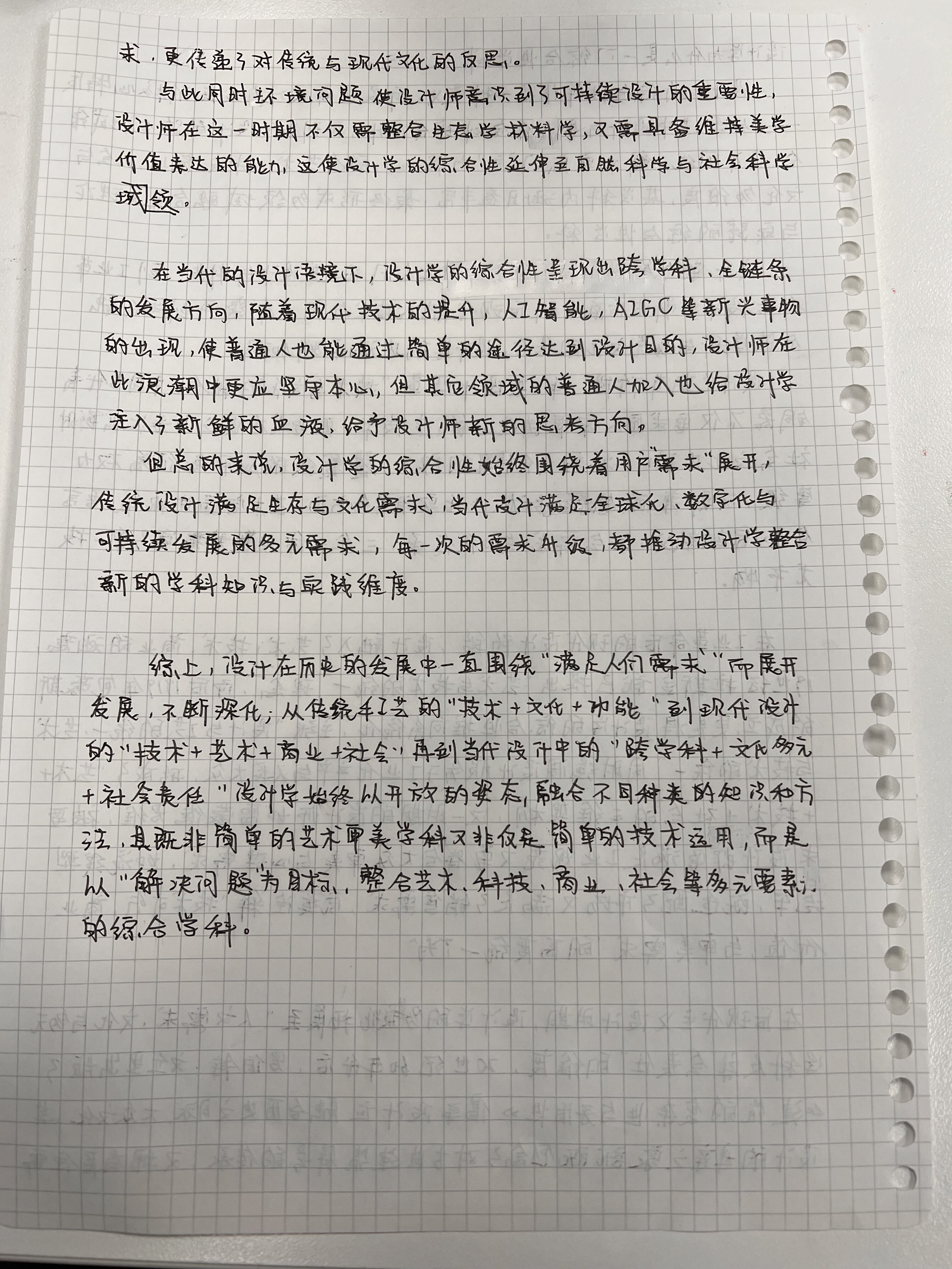 设计总的来说是造物的艺术,为了人生存和发展而进行创造的学科。设计自然会与当时的生产力因素和人类存续需求相结合,最直观的便是与工业技术、社会性学科的结合。设计学的综合性并非偶然形成,而是根植于其 “以人为中心” 的核心本质。作为一门以实践为导向的创造学科,它自诞生之初便紧扣时代生产力水平与人类存续需求,始终处于跨领域的融合发展中,设计学的边界随时代演进持续拓展,最终形成了兼具技术理性、人文关怀与创新活力的综合性学科特质。