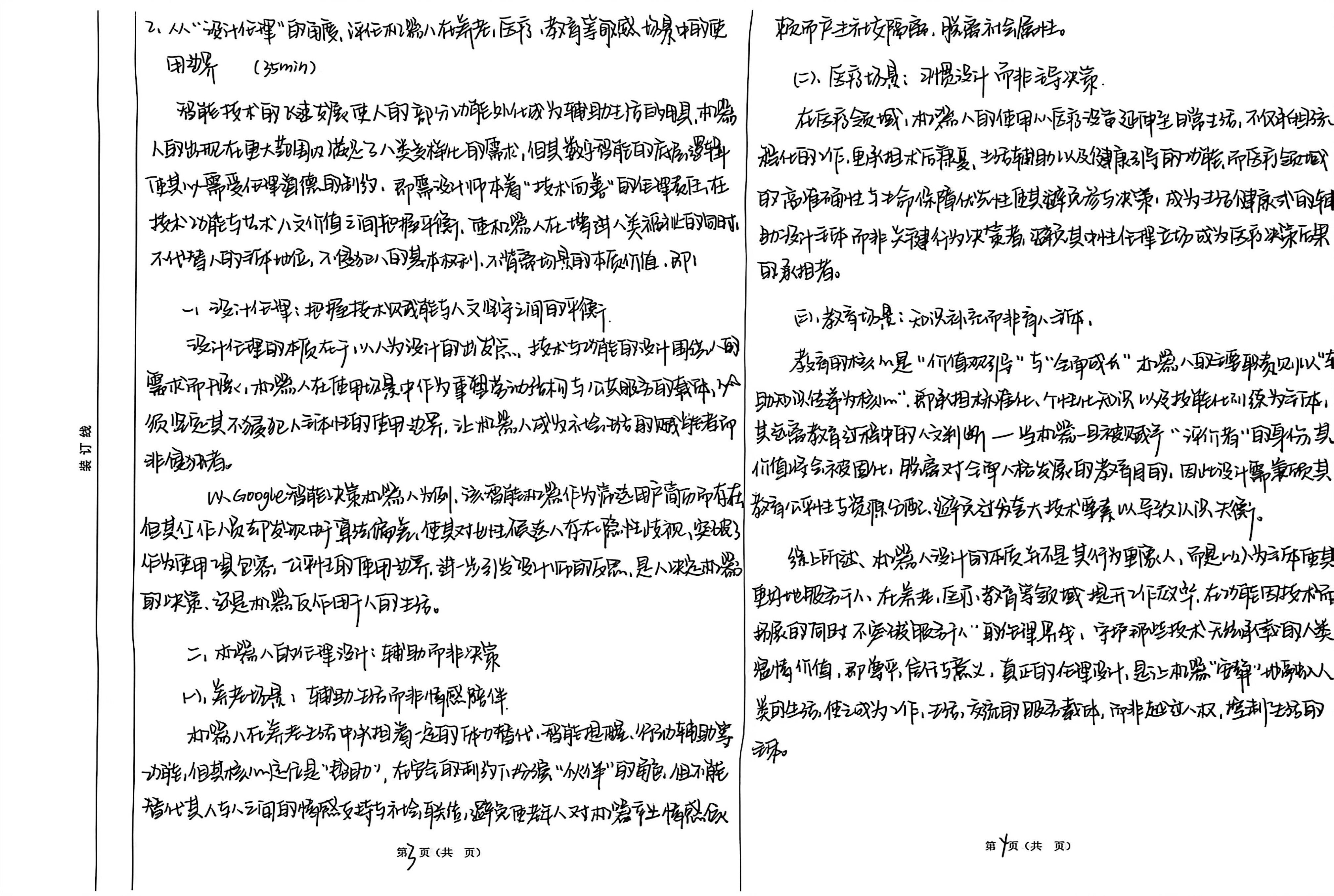 对于问题:设计评论题:人型机器人的出现被认为能重塑未来劳动结构与公共服务体系。请从“设计伦理”的角度,评论人型机器人在养老、医疗、教育等敏感场景中的使用边界。 江南大学 崔洋的回答